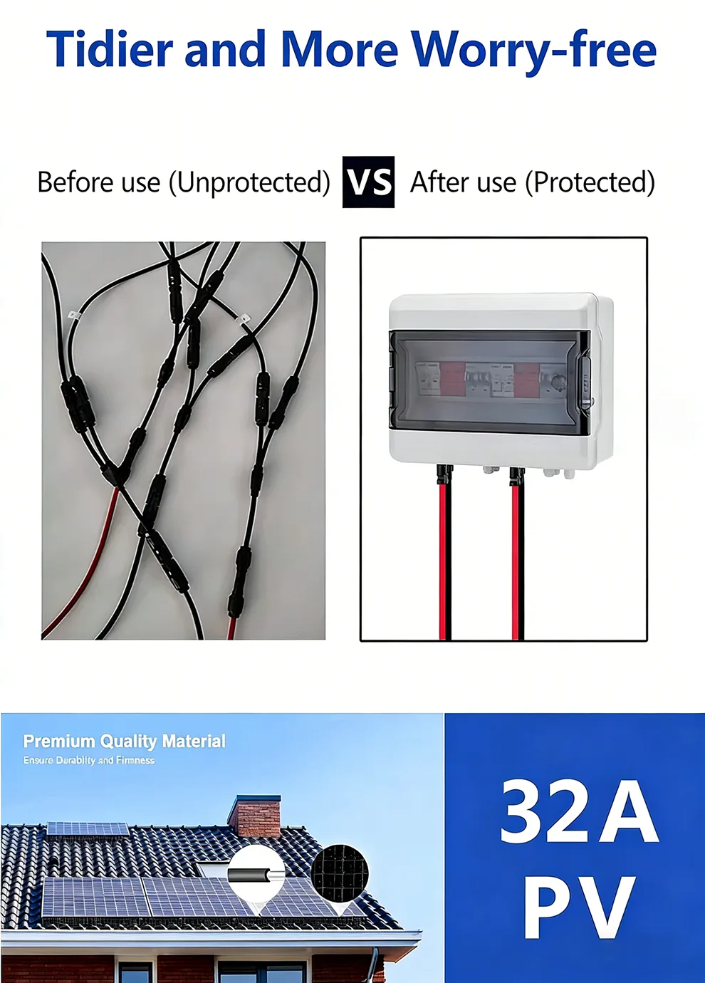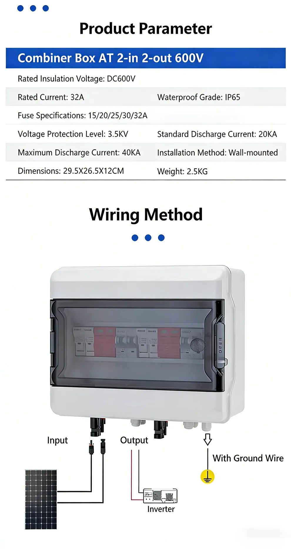 With IP65 waterproof and dustproof grade, the enclosure can adapt to various outdoor environments. The wall-mounted installation and standard MC4 connectors make wiring simpler and more efficient. It is widely compatible with mainstream inverter brands and easy to install and maintain.
