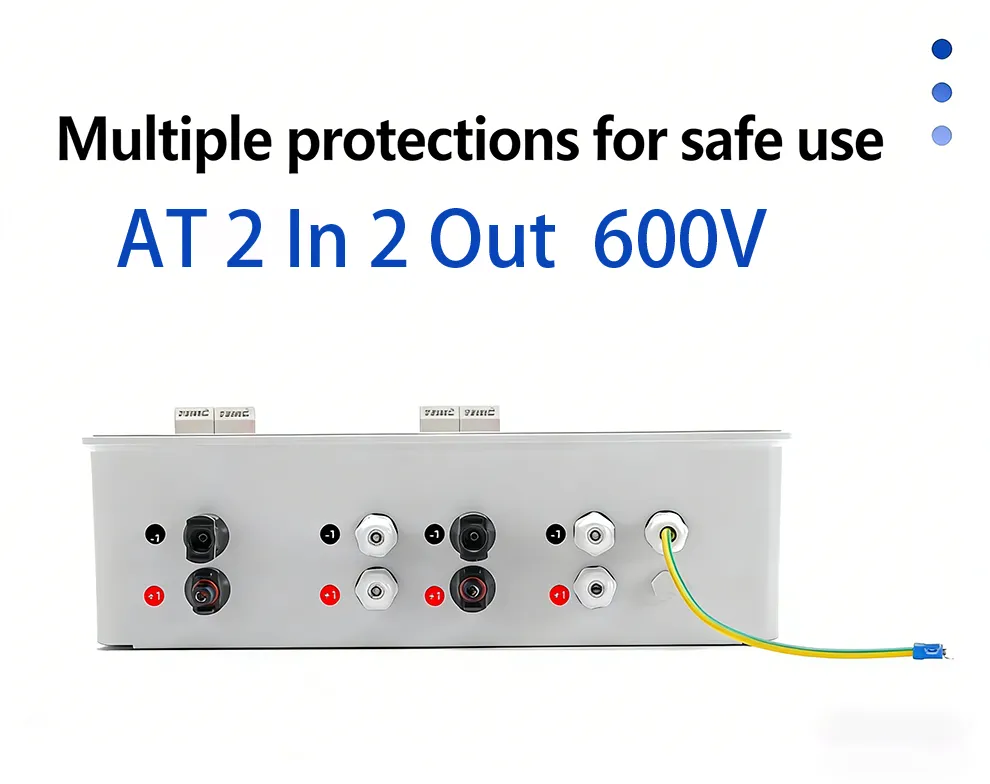 This AT 2-in-2-out 600V DC PV combiner box is specially designed for dual-string solar photovoltaic systems. It supports two independent PV strings to connect and output at the same time, making it more flexible for small and medium-sized solar installations.
