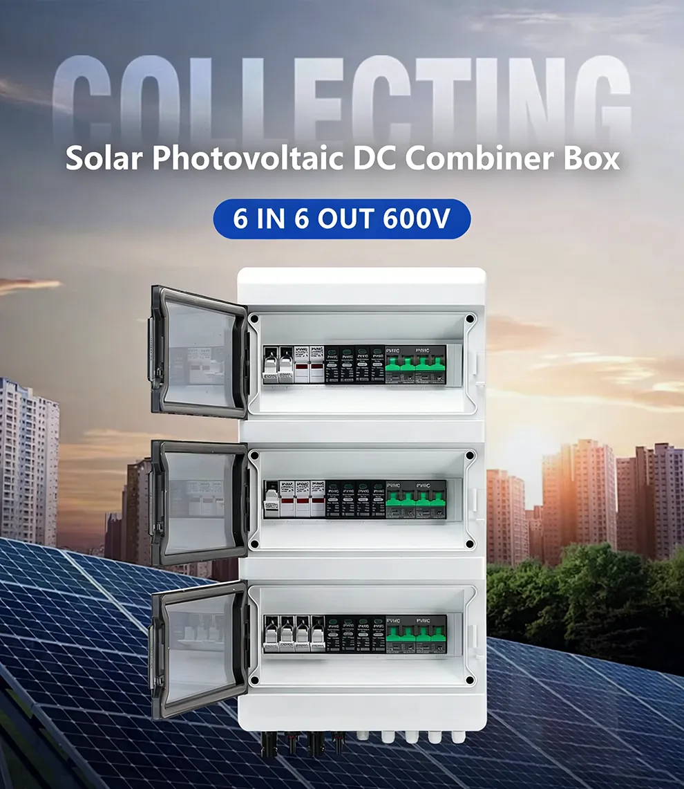 AT Series 6 String 600V Solar PV Combiner Box IP65 with Surge Protection, DC Breakers & Fuses