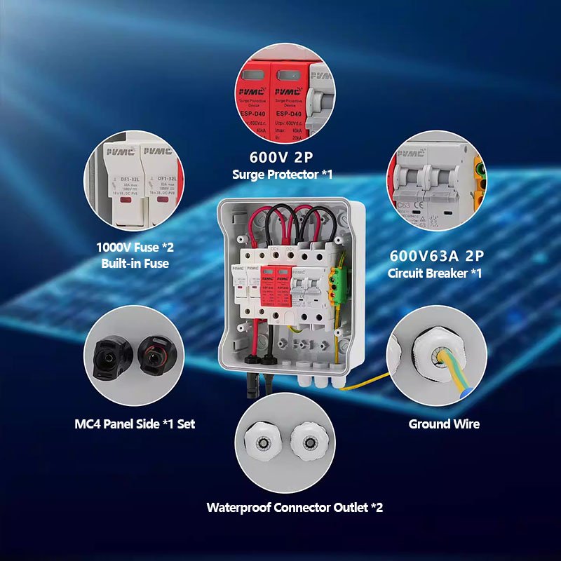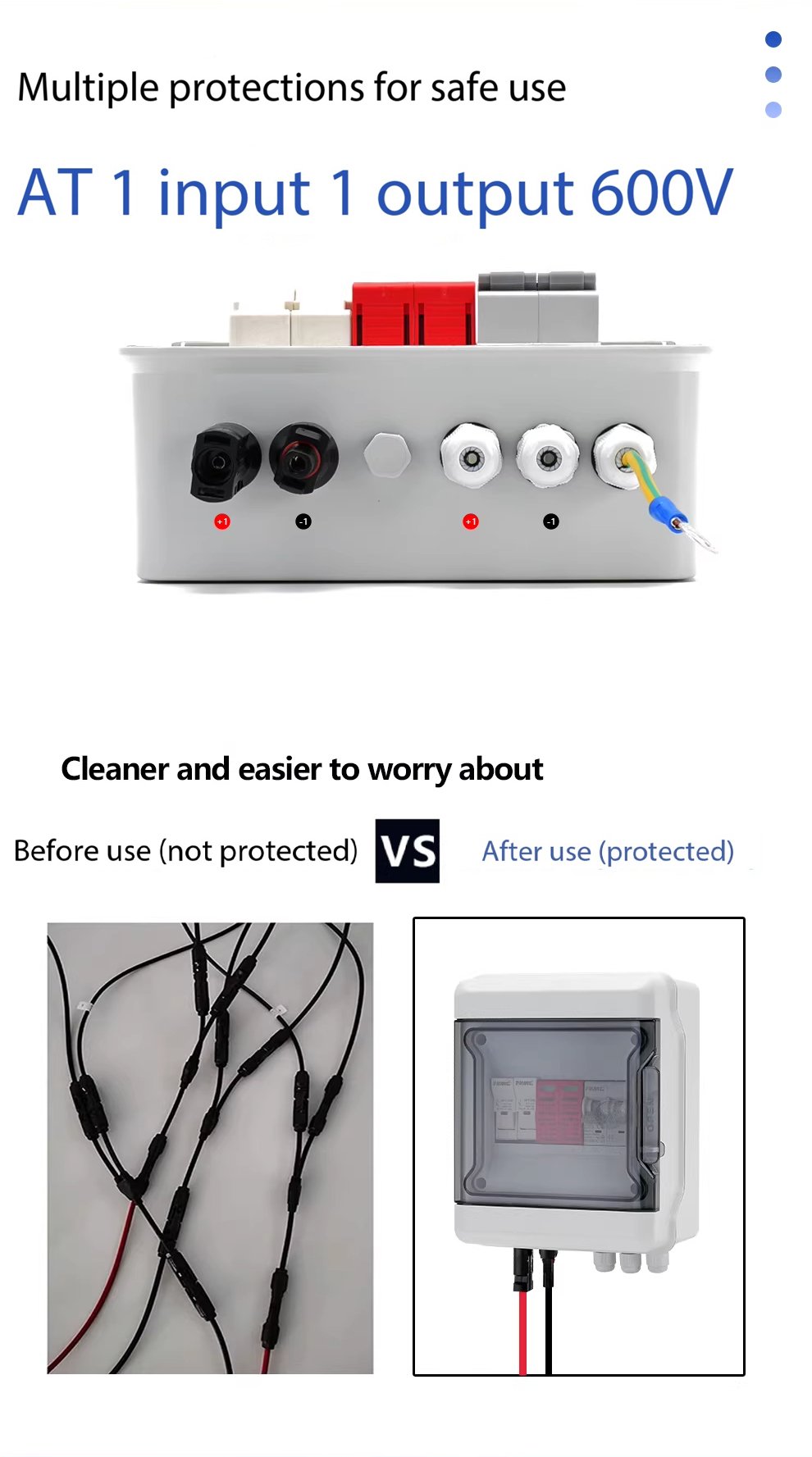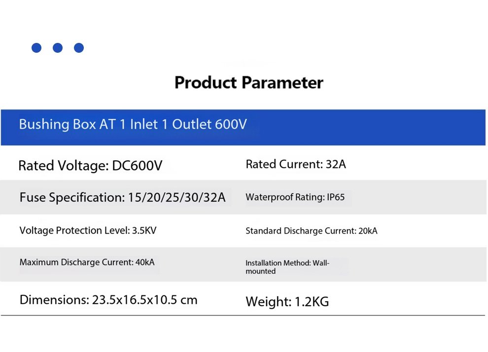 Our AT 600V 1-In-1-Out PV Combiner Box is engineered for reliable outdoor solar system performance, featuring IP65 waterproof protection and a built-in surge protection device to safeguard your photovoltaic investments. Designed for easy installation and low maintenance, this combiner box ensures safe current distribution and circuit protection, making it an essential and suitable component for both residential and small-scale commercial photovoltaic setups.