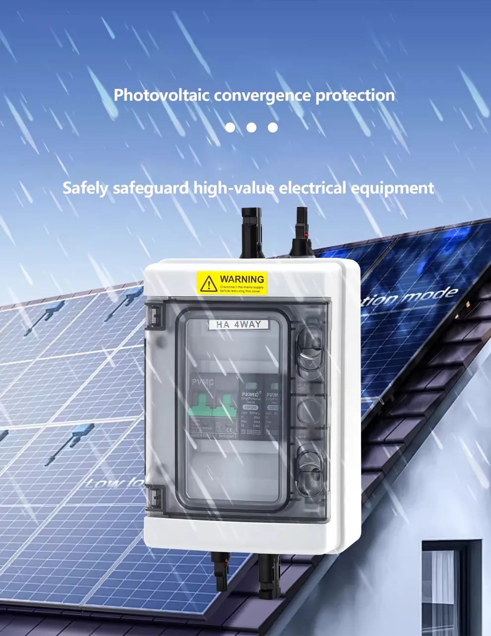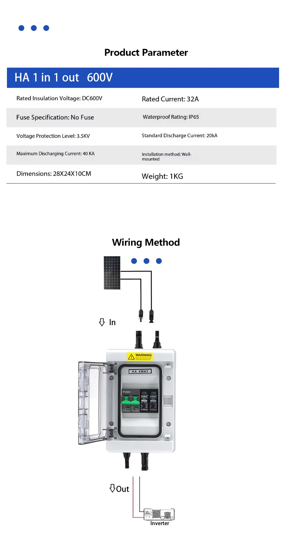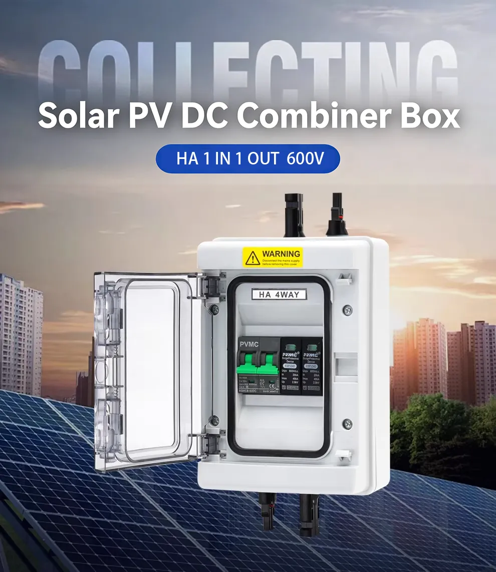 The HA Series 1 String 600V Solar PV Combiner Box is a compact and reliable solution for protecting a single PV string in 600V solar systems. It features an IP65-rated waterproof enclosure, a built-in 2P 600V surge protection device (SPD), and a 2P 600V DC breaker, providing essential protection against overcurrent, short circuits, and lightning surges.