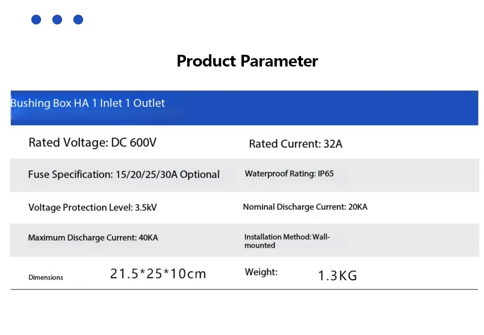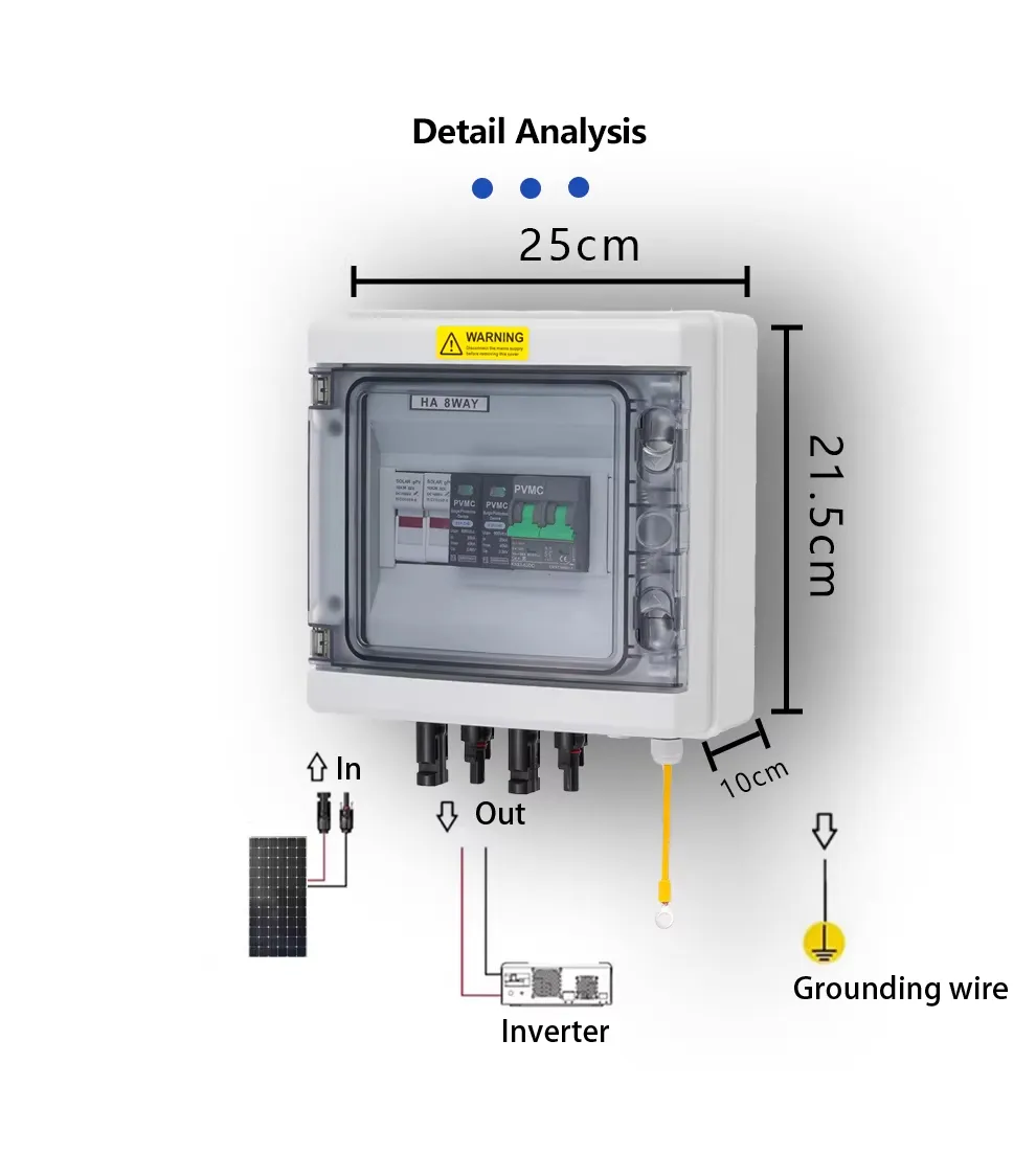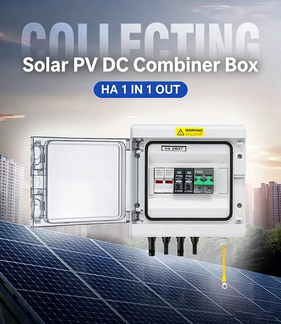 The HA Series 1 String 600V Solar PV Combiner Box is designed to safely aggregate a single PV string in 600V solar systems. With an IP65-rated enclosure, built-in 2P 600V surge protection, a 2P 600V DC breaker, and two 600V DC fuses, this combiner box ensures reliable performance and long-term durability for small-scale residential and commercial solar installations.